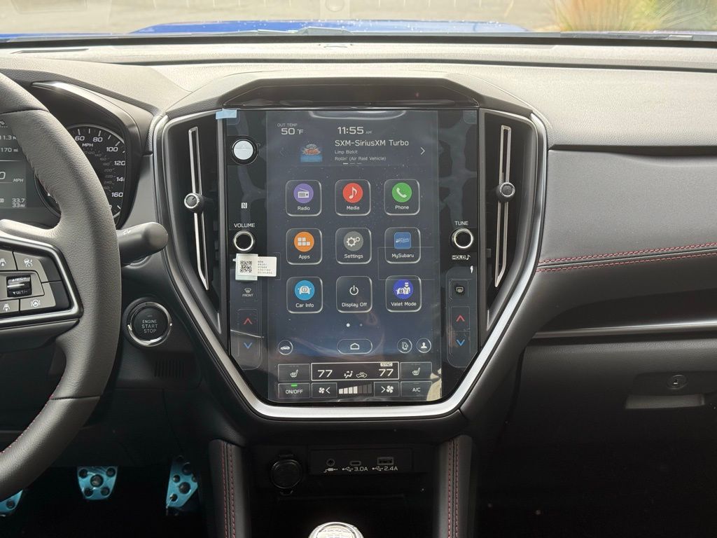 The HVAC system has its own quirks. It has a thermostat so you dial in the temperature you want. This system has been available since 1990 to my certain knowledge, but it’s an example of “why-tech” rather than “high tech” (with apologies to Road & Track, which produced an article with that title). If you get into the WRX and it’s below freezing outside, you’ll discover quickly that the thermostat’s lowest setting is 60. That results in hot air pouring out of the heater. You then have to pull over and take off your outer layer, or turn the heater off. There’s no analog lever you can open just slightly so you’re still comfortable in your winter clothes. Air conditioning seems to work better.